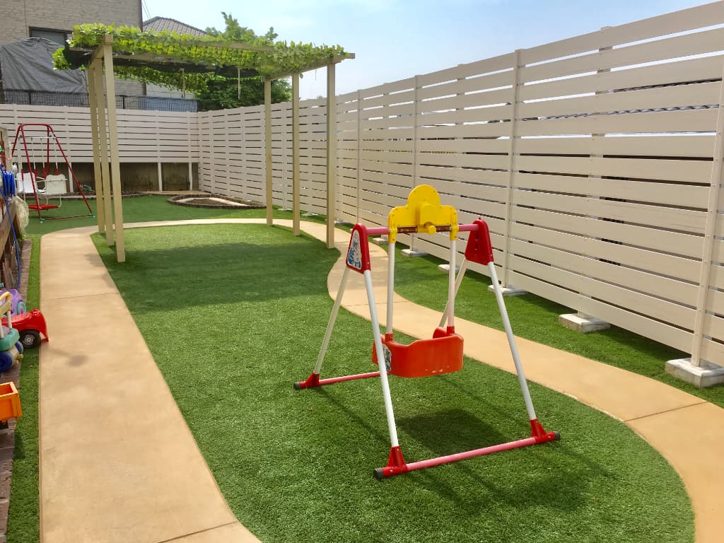夏は、バーベキュー冬は、鍋などができるように、ウッドデッキ(LIXILのキララステージ)を室内の高さ(なるべく段差のないように)に合わせ、施工し、周りの視界が気にならないように、スリットフェンス(タカショーの千本格子)を、施工しました。
