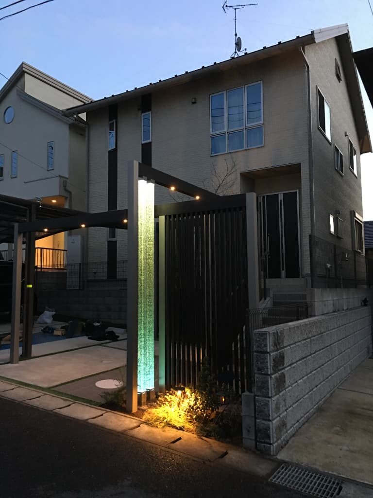 既存の構造物を活かしながら、Gフレームを高さ・プライバシー等を考慮し施工しました。建物と、プラスGとの調和を取り、夜のシーンにもこだわりました。
